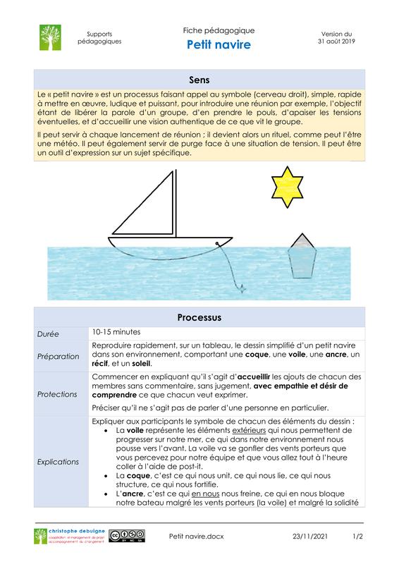 Objectif : Quand on identifie qqn d'isolé dans l'équipe, résoudre 1 pb d'équipe, faire du lien. Pour la cohésion d'équipe. Choisir un schéma en fonction de ce que l'on ressent puis on choisit à quoi cela correspond dans la liste en dessous.