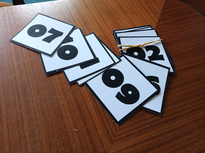 Exemple d'utilisation : Poser les cartes face cachée contre une table et faire tirer les n° au hasard. Les n° attribués permettent de constituer des équipes en désignant par exemple, les nombres pairs / impairs ou bien des fourchettes de n°