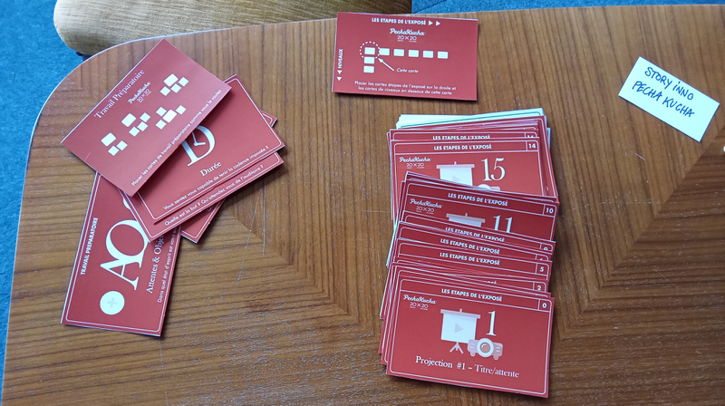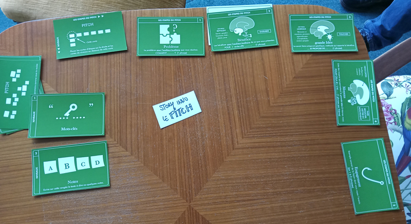 Objectif : Raconter une histoire / monter un scénario en fonction d'une trame prédéfinie. Les participants complètent la trame en ajoutant des post it